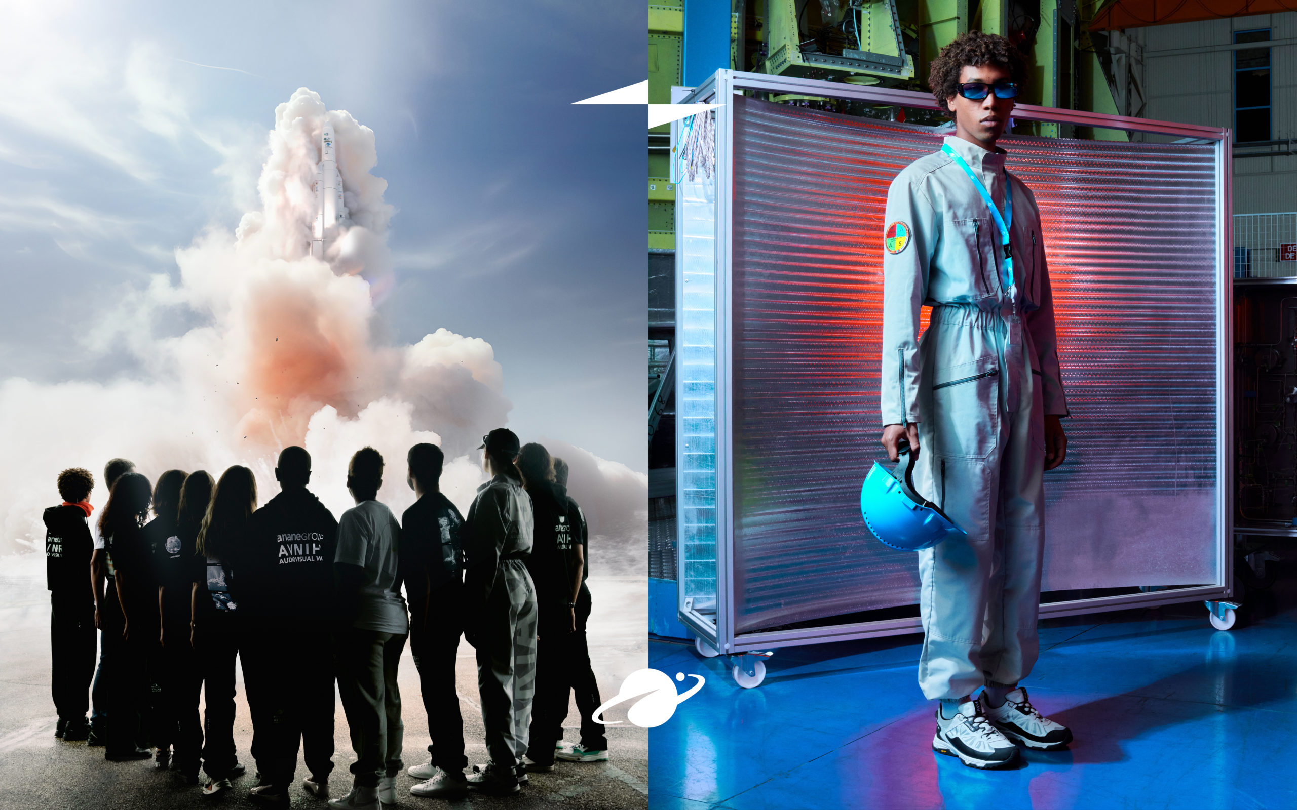 Pour l’occasion le shooting de la campagne a eu lieu dans un lieu chargé d’histoire, le Hall Ariane 5, dans l’usine ArianeGroup des Mureaux où ont été produits les étages principaux des lanceurs. Au milieu des passerelles et des rideaux de fer, des dizaines de vrais techniciens et ingénieurs posent fièrement dans leur élément. Entièrement retravaillés à l’aide de l’IA, ces clichés placent les mannequins en apesanteur ou dans le halo flamboyant d’un décollage. Quand les flammes se mêlent à la fierté et l’émotion que ressentent les équipes à chaque lancement d’Ariane, ça donne VA5AV.