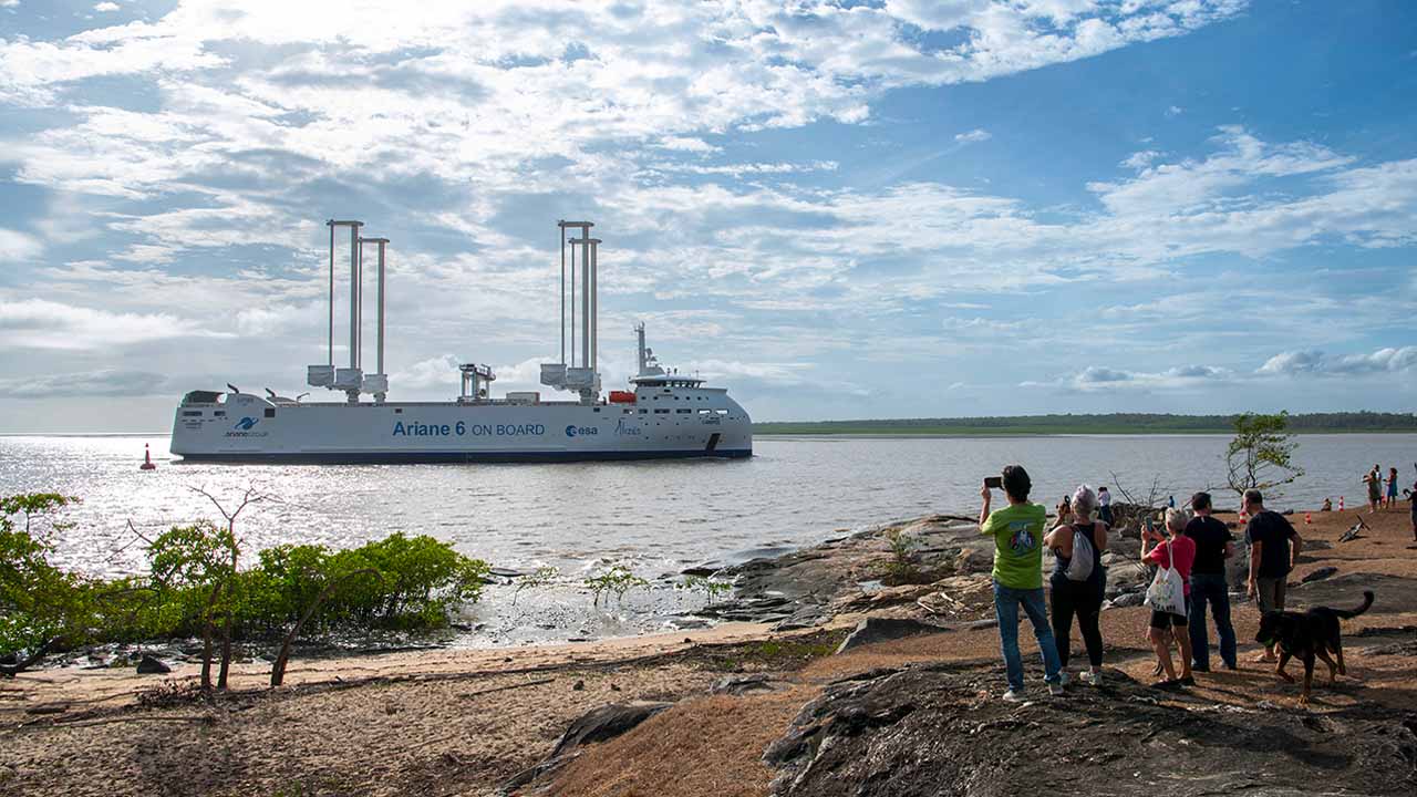 Canopée, the new Ariane 6 transport ship, reached Pariacabo harbor in French Guiana on November 3, 2023. During this first transatlantic crossing with sails, Canopée carried on board elements of the upper part of the launcher Ariane 6, including the fairing, as well as components of the boosters. These parts, destined for the inaugural flight, were unloaded and then delivered to Europe’s Spaceport in Kourou.